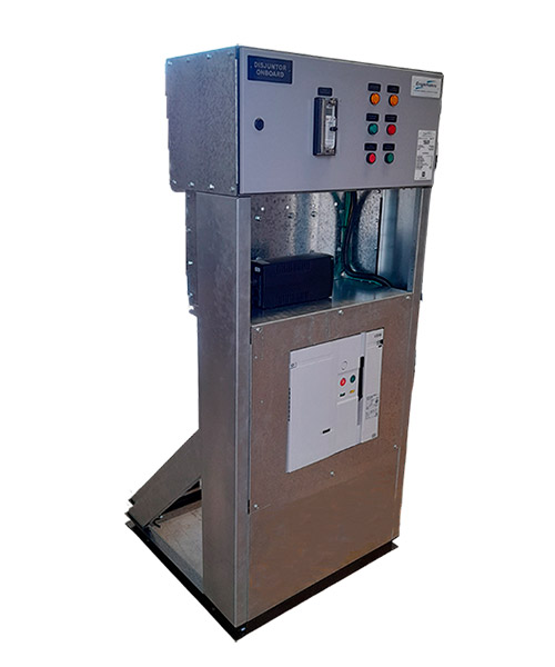 O Disjuntor ON BOARD é uma solução completa montada em estrutura metálica autoportante contendo disjuntor de média tensão SF6 ou Vácuo, transformadores de corrente e potencial, rele de proteção, conjunto de botões e sinaleiros, assim como comando a borne para operação remota. Esta solução proporciona rapidez, economia e proteção para as cabines de alvenaria.
